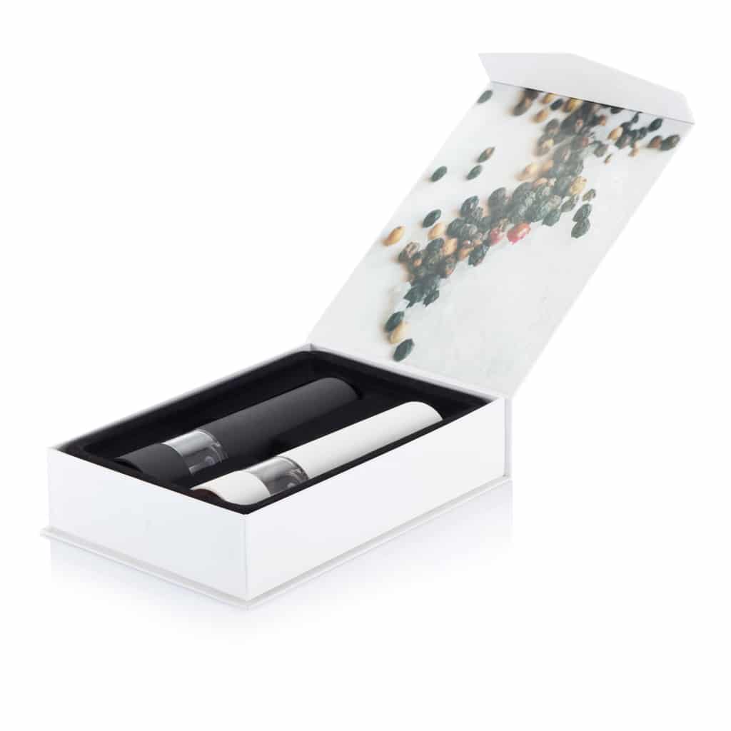 Découvrez notre set sel et poivre électrique, un incontournable pour vos événements d’entreprise. Présenté dans une élégante boîte cadeau contemporaine, ce duo en ABS avec finition en caoutchouc pulvérisé offre un mécanisme en céramique réglable pour un assaisonnement parfait. Idéal pour renforcer votre communication par l’objet, ce produit allie fonctionnalité et design moderne pour impressionner vos partenaires et clients. Offrez une expérience culinaire raffinée et professionnelle avec ce set indispensable.