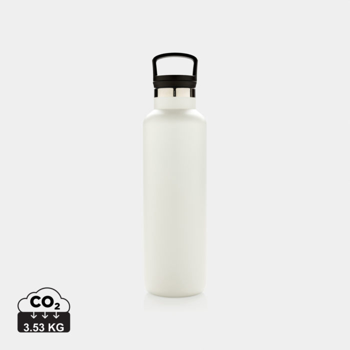 | Description | Bouteille isotherme 600ml à double paroi, extérieur en 201 et intérieur en 304, finition par poudrage électrostatique. Bouchon 2-en-1 avec filtre, idéal pour le thé ou infusions. Construite pour durer, cette bouteille s’utilise en toute saison. Garde le chaud jusqu’à 5h et le froid jusqu’à 15h. Existe en plusieurs coloris. La couleur blanc cassé est en PMS Cool Gray 1. | ||