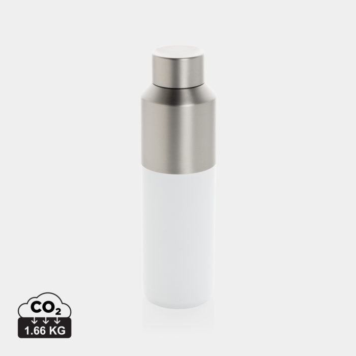 Description Bouteille d’eau de 600 ml avec extérieur bicolore distinctif et design moitié-moitié stylé. La double paroi en acier inoxydable recyclé, fabriquée sous vide, permet de conserver les boissons fraîches jusqu’à 15 heures ou chaudes jusqu’à 5 heures. La bouteille d’eau s’adapte à la plupart des porte-gobelets standard des voitures, ce qui la rend parfaite pour une utilisation en déplacement. Fabriquée à partir de matériaux recyclés certifiés RCS (Recycled Claim Standard), garantissant une chaîne d’approvisionnement entièrement certifiée pour les matériaux recyclés. Sans BPA. Emballage cadeau en tube kraft certifié FSC®. Contenu recyclé total : 95 % sur la base du poids total de l’article.