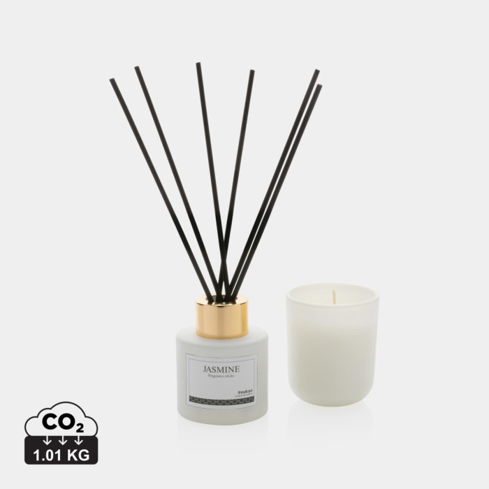 Découvrez le set cadeau Ukiyo, une alliance parfaite de bâtonnets de parfum et de bougies en cire de soja pour une ambiance apaisante au bureau. Offrez à vos partenaires d’affaires une expérience sensorielle unique avec des notes de jasmin, tout en valorisant votre engagement écologique. Ce coffret, livré dans une élégante boîte kraft, est idéal pour renforcer votre [communication par l’objet](https://mygift-promotional.ch/).
