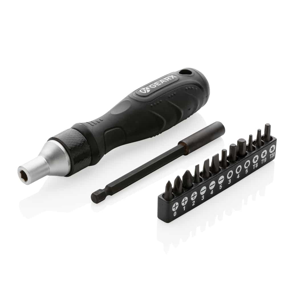 Découvrez le tournevis à cliquet Gear X, un outil de luxe indispensable pour les professionnels. Fabriqué en acier allié S2, il offre une robustesse inégalée avec des embouts variés pour toutes vos tâches. Son aimant puissant garantit une fixation rapide et efficace. Présenté dans une élégante boîte cadeau, il est idéal pour enrichir votre communication par l’objet.
